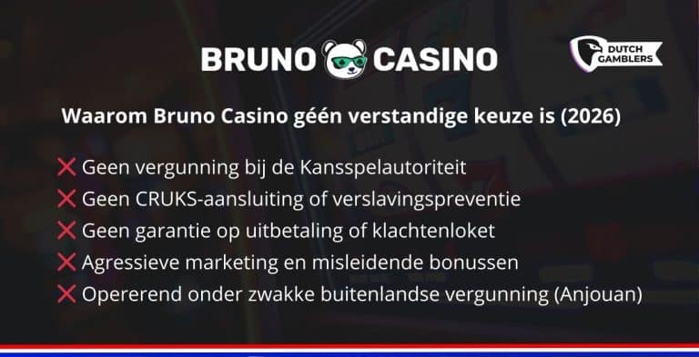 Let op: Illegaal in Nederland – Geen vergunning Kansspelautoriteit.Risico’s: Trage uitbetalingen, onredelijke voorwaarden, agressieve marketing. Bekijk hier ons overzicht met