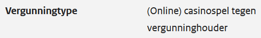 We weten verder dat Winz Casino een vergunning heeft gekregen voor ‘spellen tegen de vergunninghouder’: